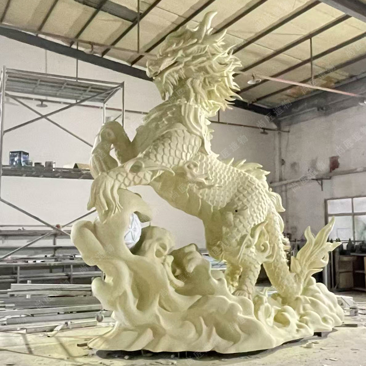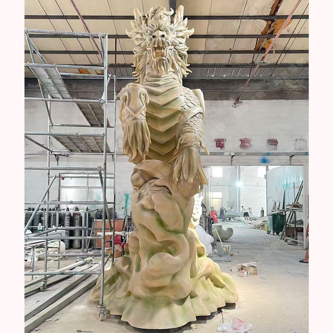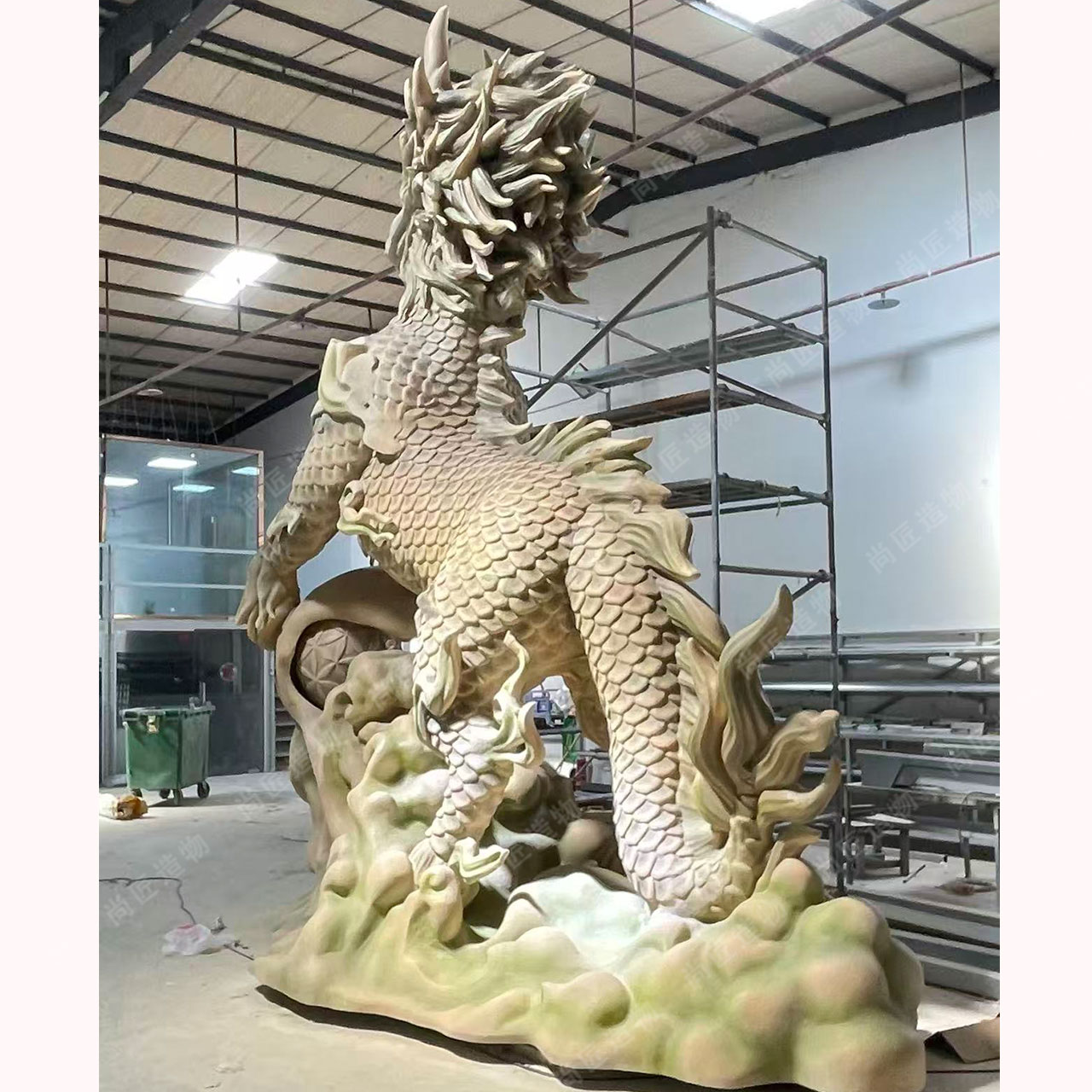 我们为方特熊出没乐园制作的一款玻璃钢麒麟雕塑,表面仿石材的效果。其最大的特点是手里旋转的龙珠,当有客人经过麒麟的时候,手里的龙珠会自动开始旋转,嘴里灯光亮起并伴随着吐雾效果。